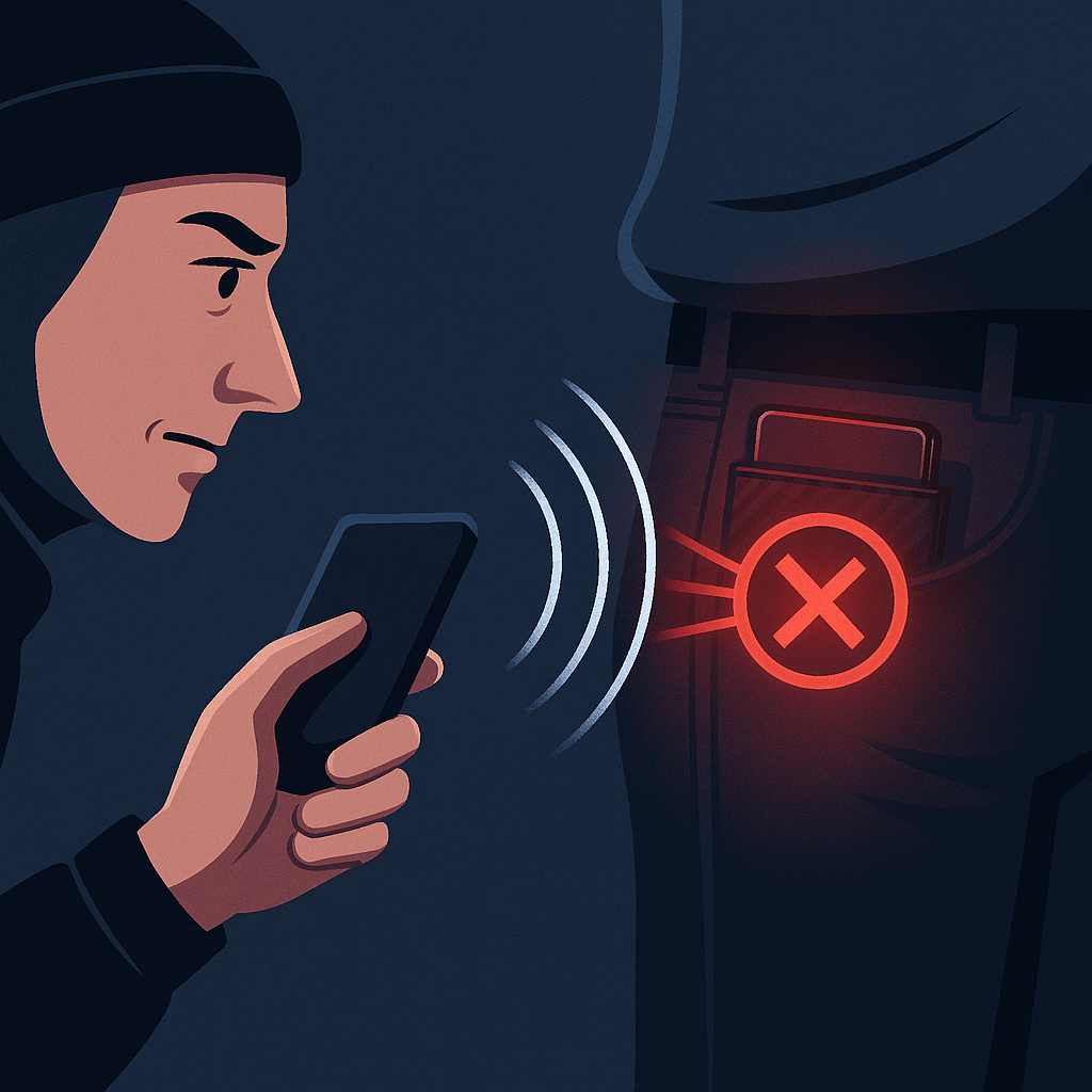 RFID защитата функционира чрез вграждане на материал, който блокира радиовълните, в структурата на портфейла. Този материал създава бариера, която предотвратява преминаването на радиочестотни сигнали, като по този начин защитава информацията, съхранявана в RFID чиповете на вашите карти.
